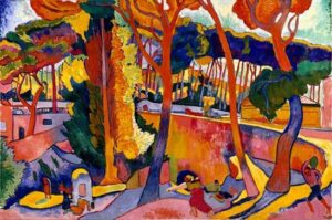 Fauvism uses a style that is almost similar to Impressionism but rejects the basic idea, namely: imitation of nature. Fauvism style makes color an independent element of art. Color is not only the color of clothes, the color of the sky, or the color of the skin but becomes one of the elements that stand alone without being any physical representation.